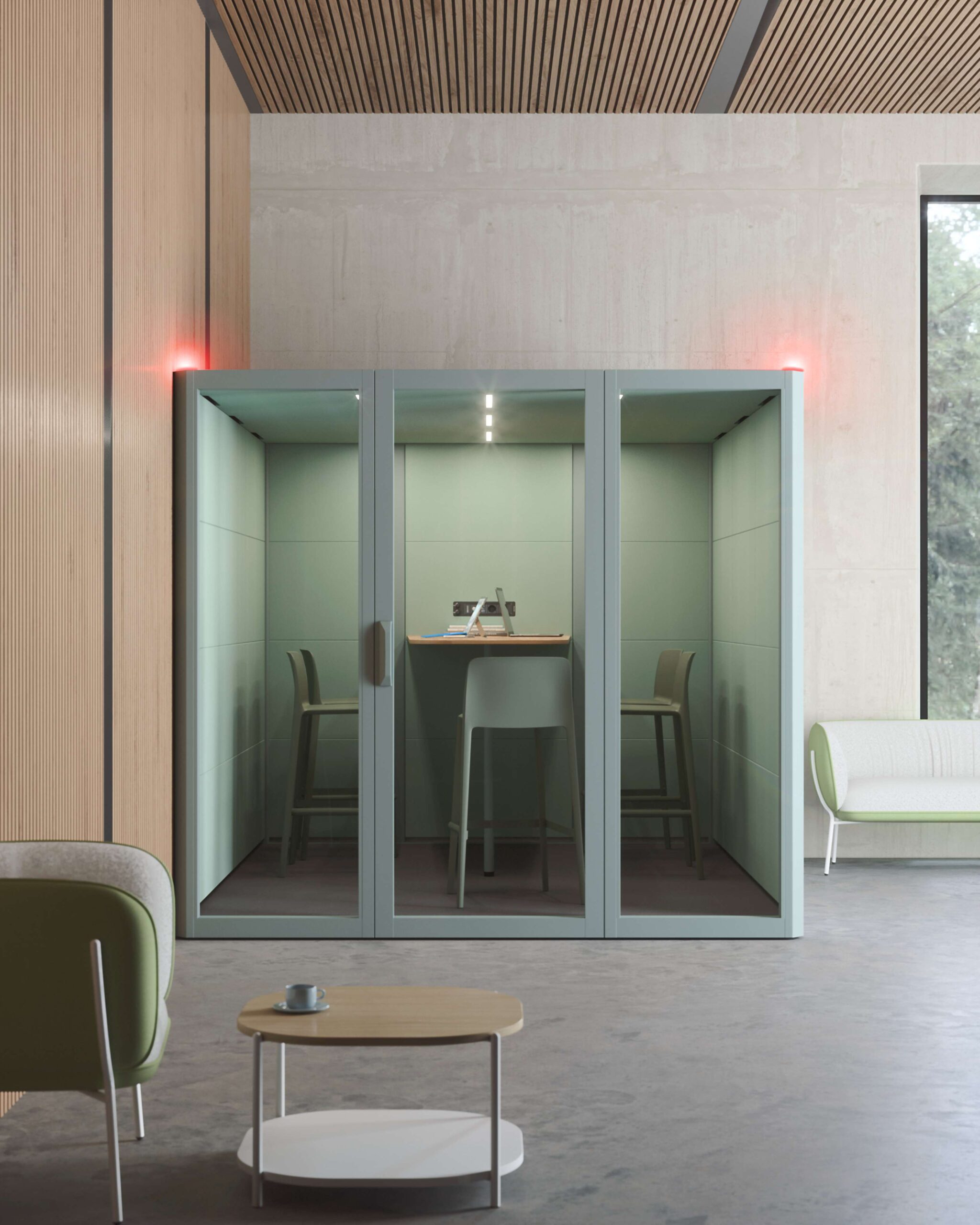Dal punto di vista estetico, il design della Qyos 600 è moderno ed essenziale, facilmente integrabile in diversi contesti architettonici. Allo stesso tempo, la cabina mantiene una forte presenza professionale, valorizzando l’organizzazione degli spazi aziendali. Proprio per queste caratteristiche, la cabina acustica Qyos 600 rappresenta una scelta strategica per aziende che puntano su collaborazione, flessibilità e ottimizzazione degli ambienti di lavoro.