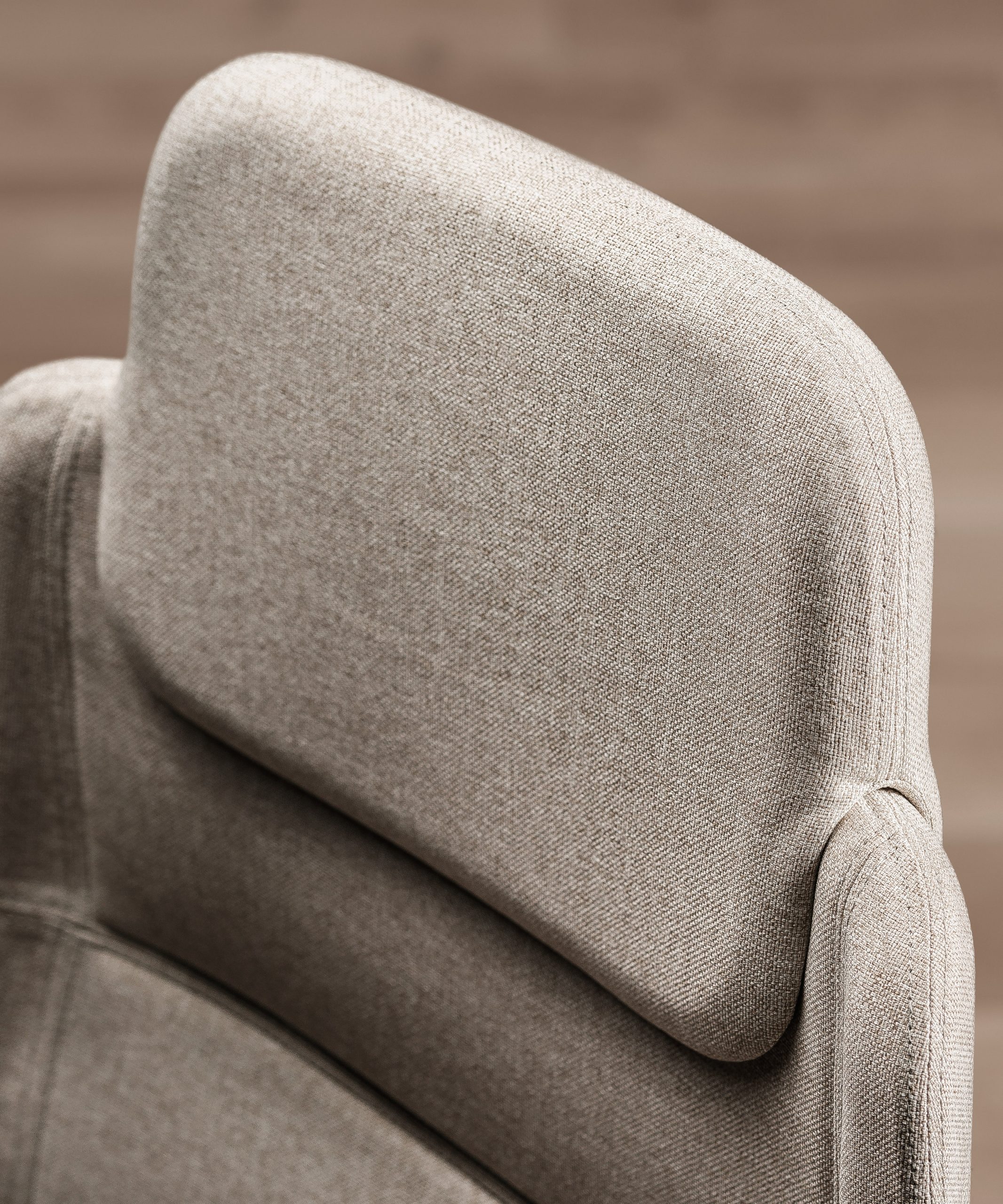 Il poggiatesta imbottito garantisce un comfort superiore durante l’uso prolungato, mentre il cuscino di seduta, disponibile con rivestimento uniforme o differenziato, contribuisce a un’esperienza ergonomica e personalizzata. Ogni elemento è studiato per offrire il massimo in termini di funzionalità e stile.