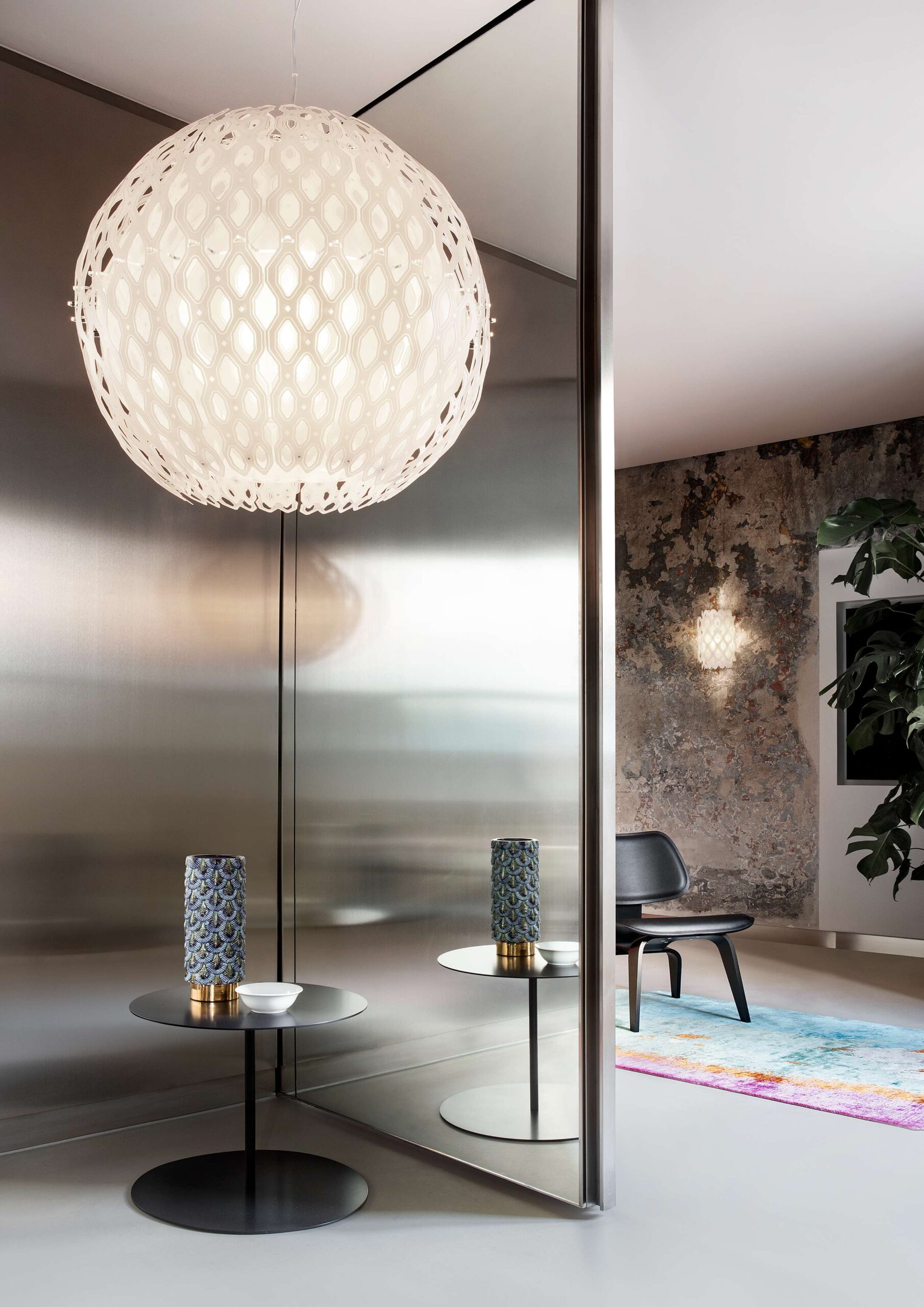 Grazie alla sua versatilità progettuale, Charlotte Globe si inserisce perfettamente in ambienti residenziali, come living e sale da pranzo, ma anche in spazi contract e hospitality, tra cui hotel, ristoranti e lounge di design. Inoltre, la combinazione tra forma sferica e decoro geometrico rende questa lampada un vero punto focale dell’ambiente.