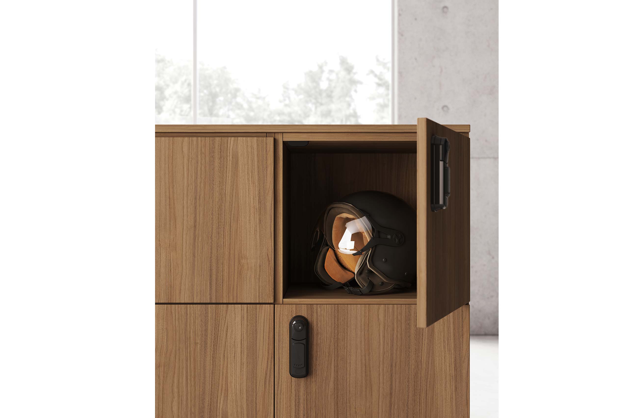 In primo luogo, i locker offrono scomparti individuali chiusi, ideali per riporre effetti personali, documenti o strumenti di lavoro in modo sicuro. Le ante pulite e lineari, dotate di maniglie discrete, contribuiscono a creare un’estetica minimale che si integra perfettamente con l’arredo ufficio moderno. Inoltre, la possibilità di alternare moduli chiusi e vani a giorno consente di personalizzare la composizione, migliorando sia la funzionalità che l’impatto visivo.