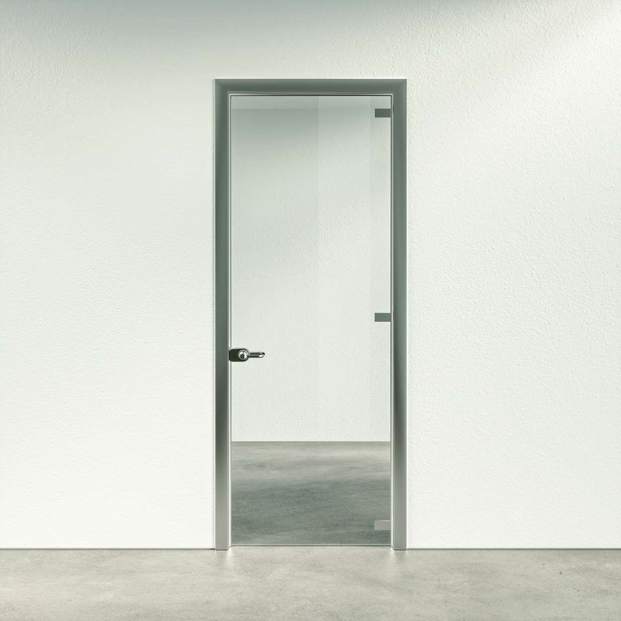 Le porte proposte sono disponibili in due varianti: anta in legno tamburato, per un’estetica calda e naturale, oppure anta in vetro in cristallo temperato trasparente, ideale per ambienti moderni e luminosi. Entrambe le soluzioni garantiscono resistenza, sicurezza e un impatto visivo coerente con lo stile dell’ambiente.