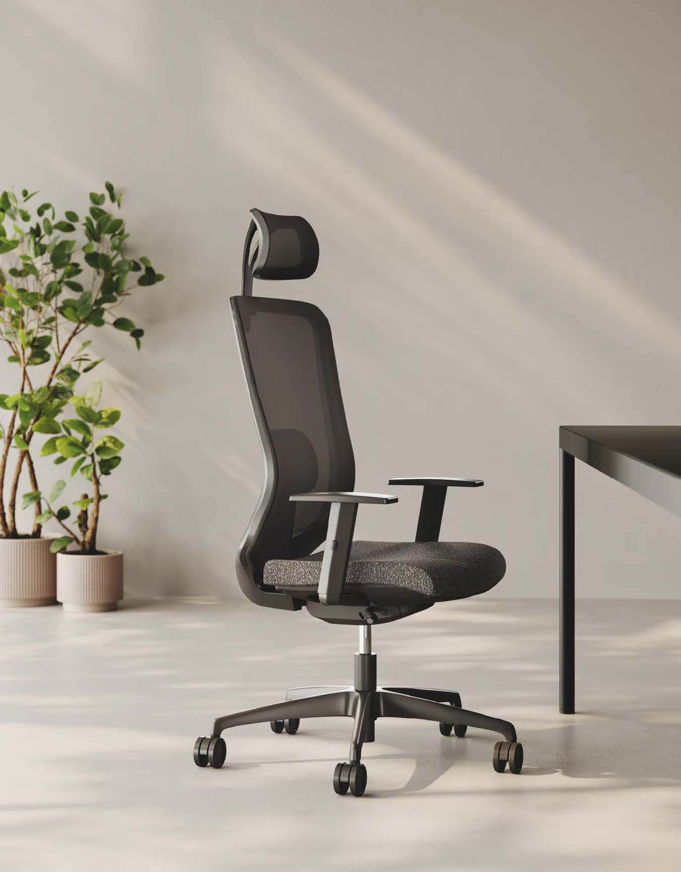 Inoltre, la versione con poggiatesta aggiunge un ulteriore livello di supporto, rendendo la sedia Comfort perfetta anche per ambienti semi-direzionali. La collezione, infatti, si distingue per la sua coerenza stilistica: disponibile sia nella versione operativa sia in quella cantilever, è ideale per ospitare visitatori con eleganza.
