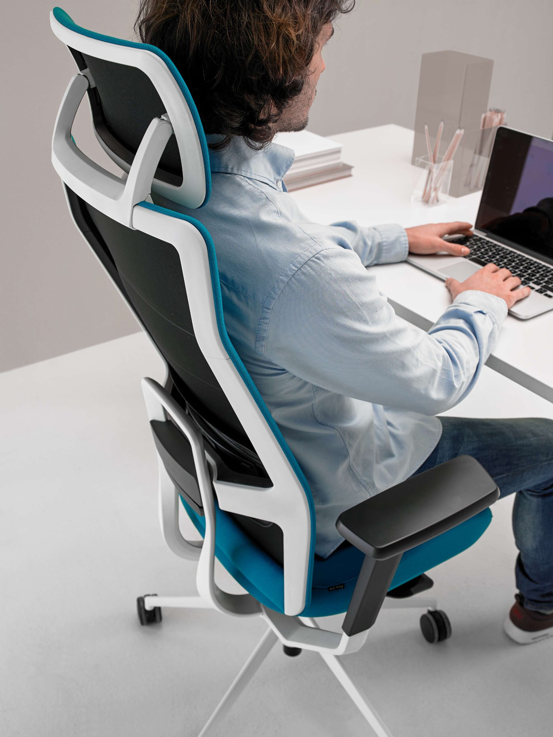 Innanzitutto, TNK Flex è completamente regolabile. L’altezza, l’inclinazione e la torsione della sedia possono essere personalizzate in base alle esigenze di ciascun utente, consentendo un adattamento perfetto a qualsiasi postura. Di conseguenza, ogni movimento del corpo viene supportato in modo ottimale, mentre i carichi su schiena, spalle e collo sono ridotti. Allo stesso tempo, questa flessibilità migliora il benessere fisico, permettendo di affrontare lunghe giornate lavorative senza affaticamento eccessivo.